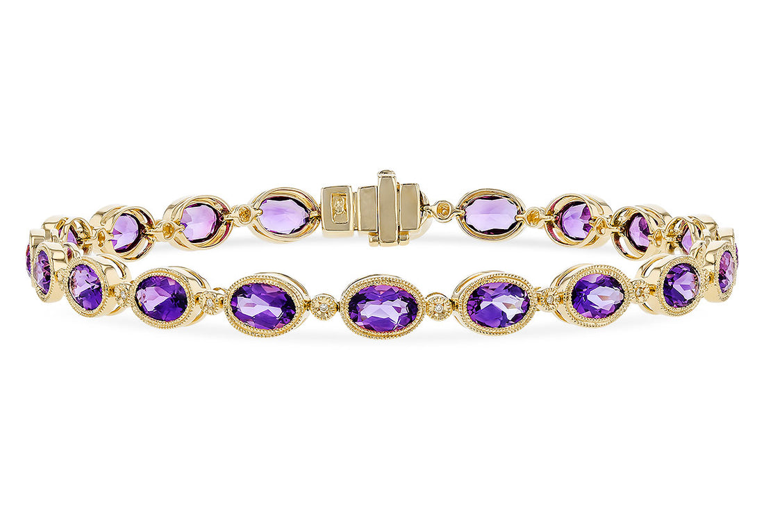 14KT Yellow Gold 7.25" Amethyst & Diamond Bracelet, AM: 6.86ct., Dia: 0.04ct t.w.