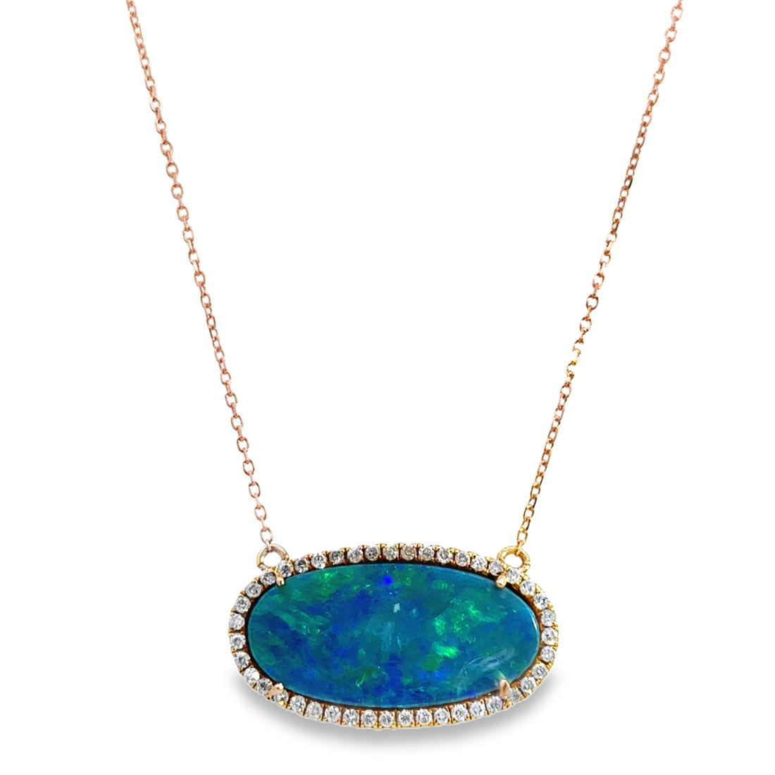 14KT Rose Gold18" Opal & Diamond Ring, Dia: 0.35ct., OP: 9.40ct.