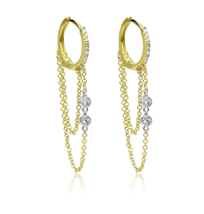 MeiraT - 14KT Two-Tone Fringe Diamond Hoop Earrings, Dia: 0.21ct t.w.
