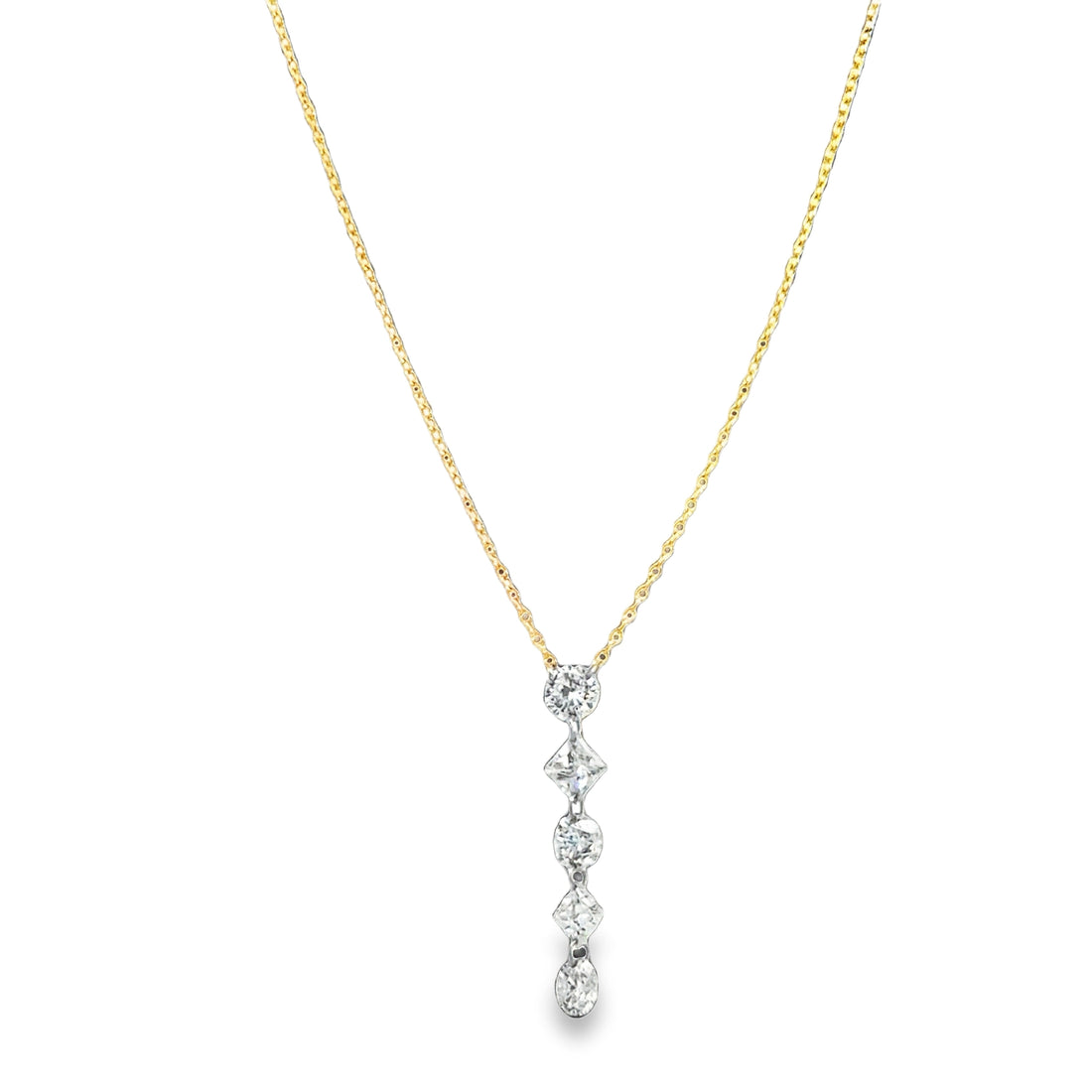 Aresa - 18KT Yellow Gold 18" Five Stone Round & Princess Shaped Diamond Streamer Necklace,...