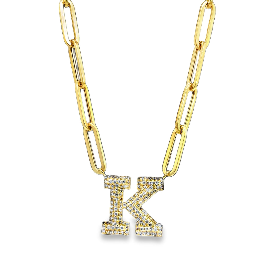 MeiraT - 14KT Yellow Gold 18" Paperclip "K" Initial Diamond Necklace, Dia: 0.97ct t.w.