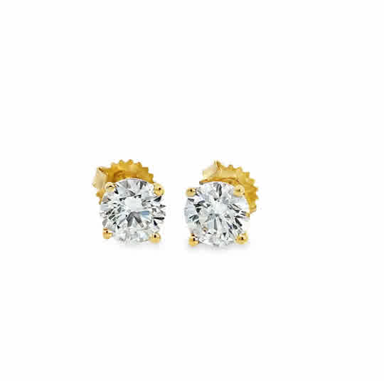 14KT Yellow Gold Lab Grown Four Prong Martini Set Round Diamond Stud Earrings, Dia: 2.52ct...