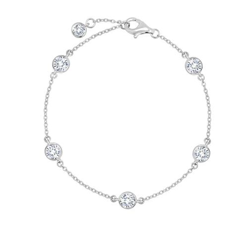 Sterling Silver 7" 4mm CZ Bezel Set Station Bracelet Finished in Pure Platinum - 1.25ct...