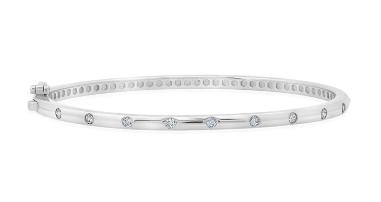 Sterling Silver Brilliant Round Flush Set Eternity Bangle Bracelet Finished in Pure Platinum - 0.80ct...