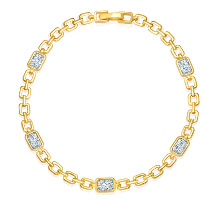 Sterling Silver 7" Radiant Shaped CZ Link Style Bracelet Finished in 18KT Yellow Gold -...