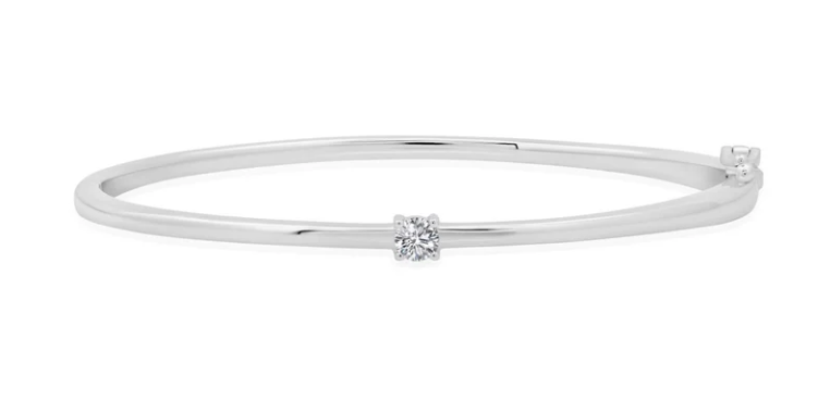 Sterling Silver Briiliant Round Solitaire Bangle Bracelet Finished in Pure Platinum - 0.30ct t.w.