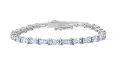 Sterling Silver 7" Baguette Shaped CZ Tennis Style Bracelet Finished in Pure Platinum - 7.10ct...