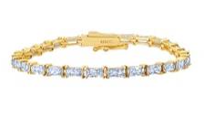 Sterling Silver 7" Multi-Shaped CZ Tennis Style Bracelet Finished in 18KT Yellow Gold - 7.60ct...