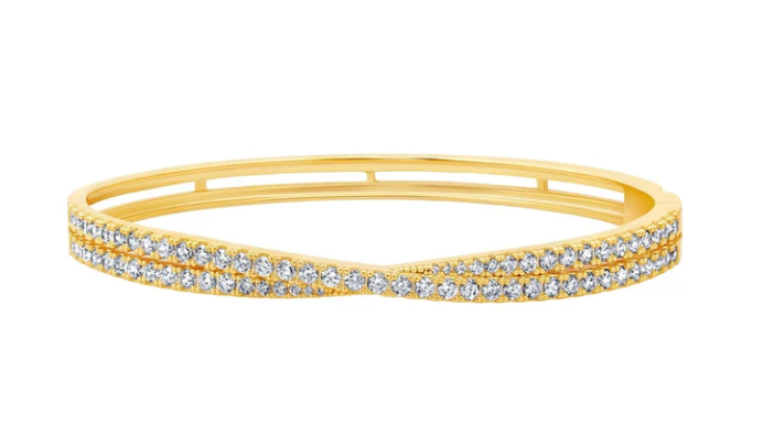 Sterling Silver 7" Medium Criss Cross CZ Bangle Finished in 18KT Yellow Gold - 1.90ct...