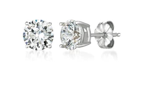 Sterling Silver Solitaire Brilliant CZ Stud Earrings Finished in Pure Platinum - 2ct t.w.