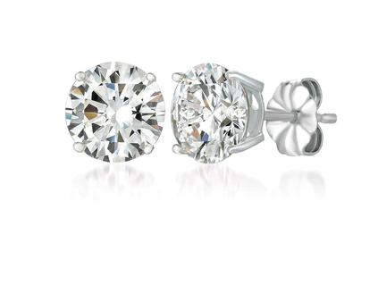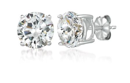 Sterling Silver Solitaire Brilliant CZ Stud Earrings Finished in Pure Platinum - 6ct t.w.