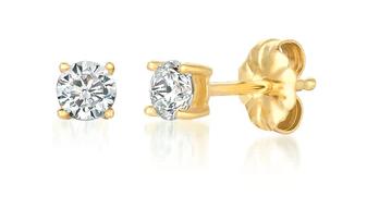Sterling Silver Solitaire Brilliant CZ Stud Earrings Finished in 18kt Yellow Gold - 0.50ct t.w.