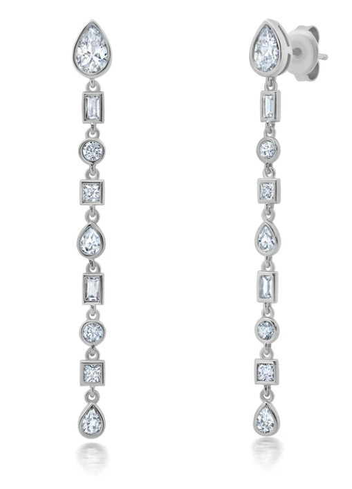 Sterling Silver 7" Multi Shaped CZ Bezel Earrings Finished in Pure Platinum, 2.20ct t.w.