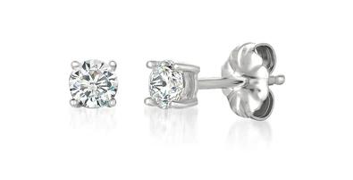 Sterling Silver Solitaire Brilliant CZ Stud Earrings Finished in Pure Platinum - 0.50ct t.w.