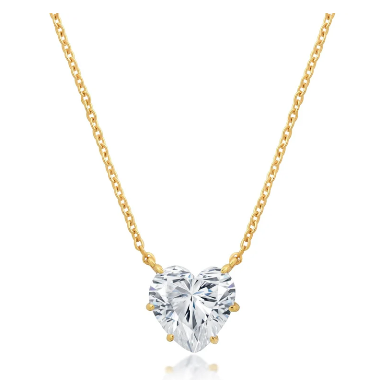 Sterling Silver 18"-17"-16" Solitaire Heart Shaped CZ Necklace Finished in 18KT Yellow Gold, 2ct t.w.