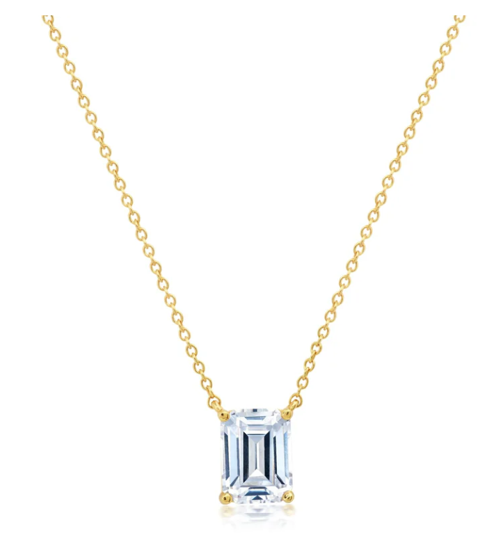 Sterling Silver 18"-17"-16" Emerald Cut CZ Solitaire Necklace Finished in 18KT Yellow Gold, 1.85ct t.w.