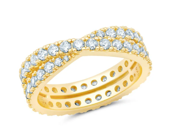 Sterling Silver Eternity Crossed CZ Band Finished in 18KT Yellow Gold - 1.80ct t.w., Size...