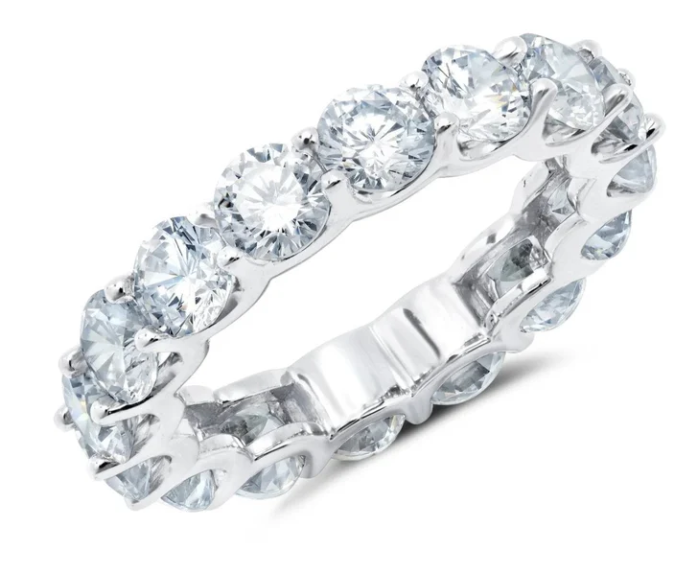 Sterling Silver Brilliant Round CZ Eternity Band Finished in Pure Platinum, 6.30ct t.w., Size 8