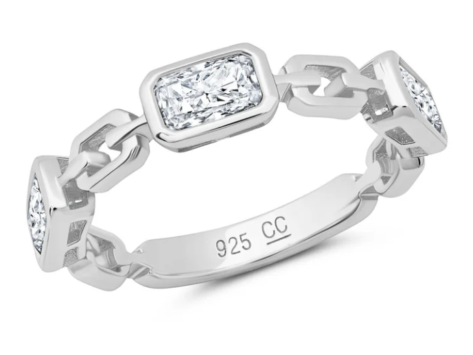 Sterling Silver Radiant Shaped CZ Link Ring Finished in Pure Platinum, 1.50ct t.w, Size 7