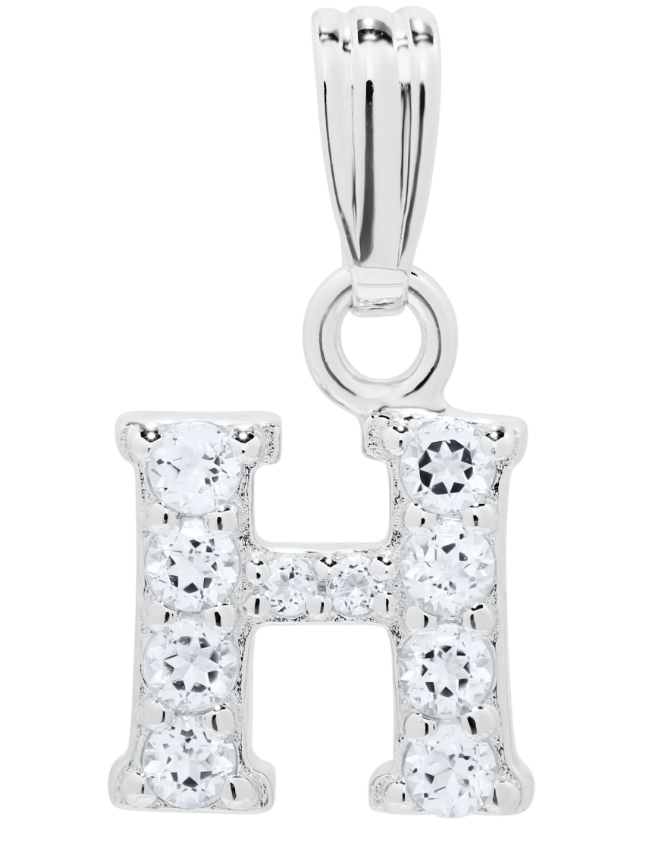 Sterling Silver Rhodium Plated White Topaz Initial "H" Pendant with 15" Cable Chain
