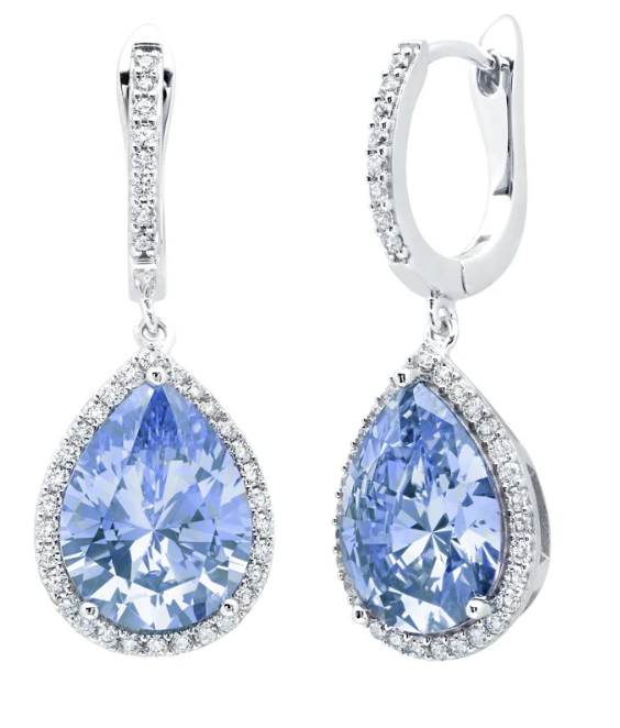 Sterling Silver Pear Shaped Blue Quartz & CZ Drop Earrings Finished in Pure Platinum, 11.25ct...