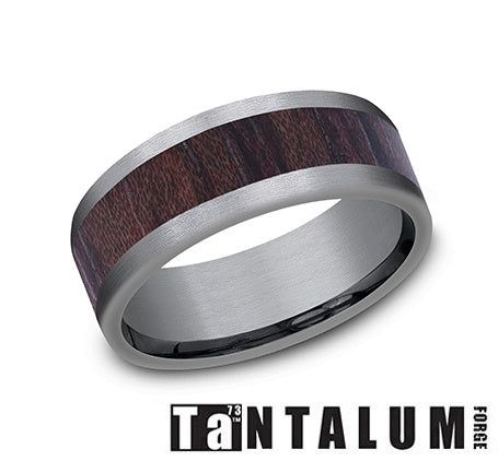 8mm Comfort Fit Grey Tantalum Band with Wooden Center, Size 10