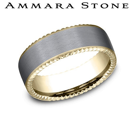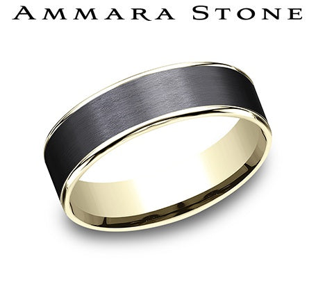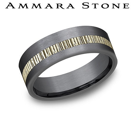 14KT Yellow Gold & Darkened Tantalum 7mm Comfort Fit Wedding Band with Wire Brush Finish...