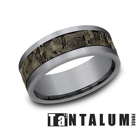 8mm Comfort Fit Grey & Bronze Tantalum Band with Wall Fracture Design in center &...
