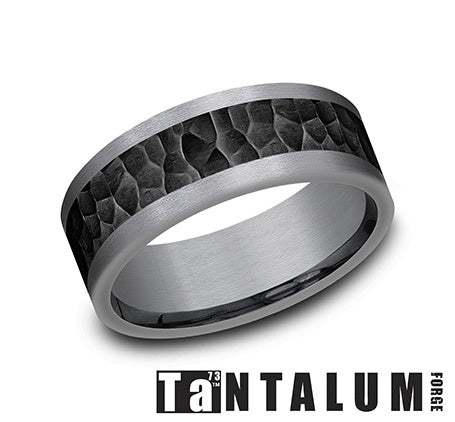 8mm Comfort Fit Grey Tantalum & Black Titanium Band with Hammered Center & Straight Edges,...
