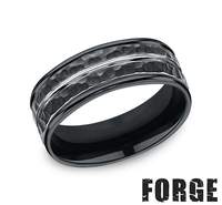 8mm Comfort Fit Black Cobalt Chrome Band with Hammered Center Cut, Size 10