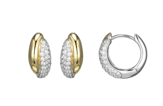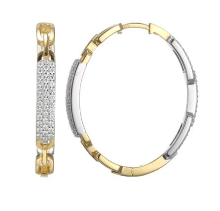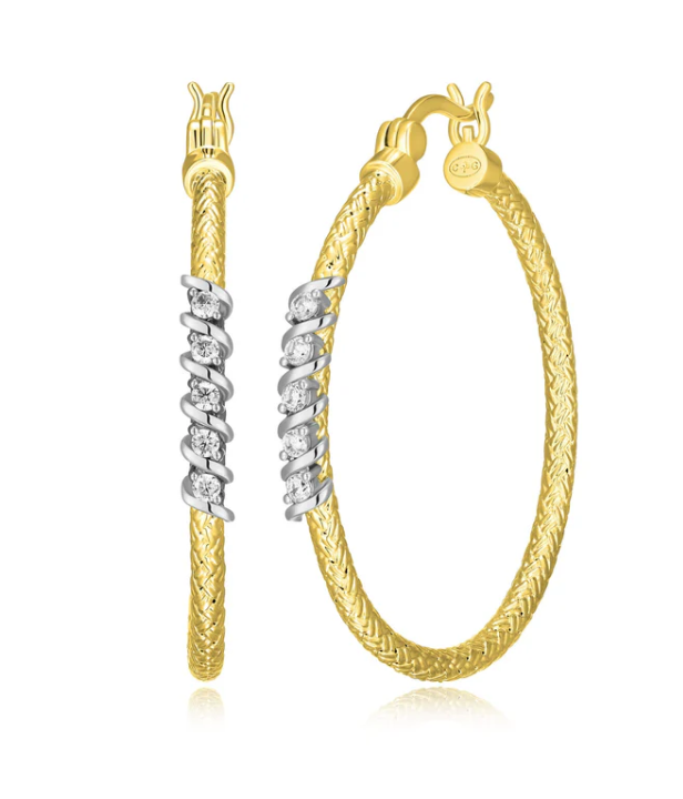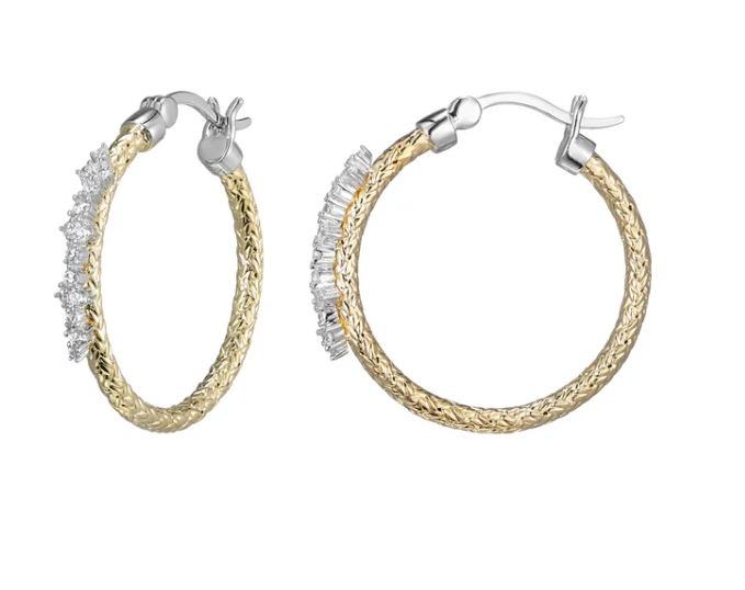 SS/GP Two-tone CZ Medium Hoop Silver Earrings