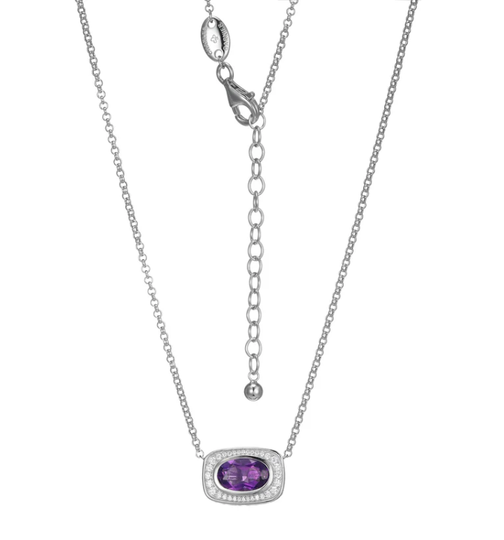 Charles Garnier - Classic Mesh 2 Collection - Sterling Silver Rhodium Plated 17"+2" Genuine Amethyst...