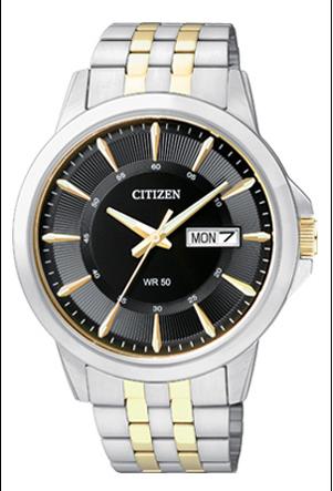 CITIZEN - QUARTZ - Men's Two-Tone Stainless Steel Quartz Watch with Black Dial, Window Day-Date...