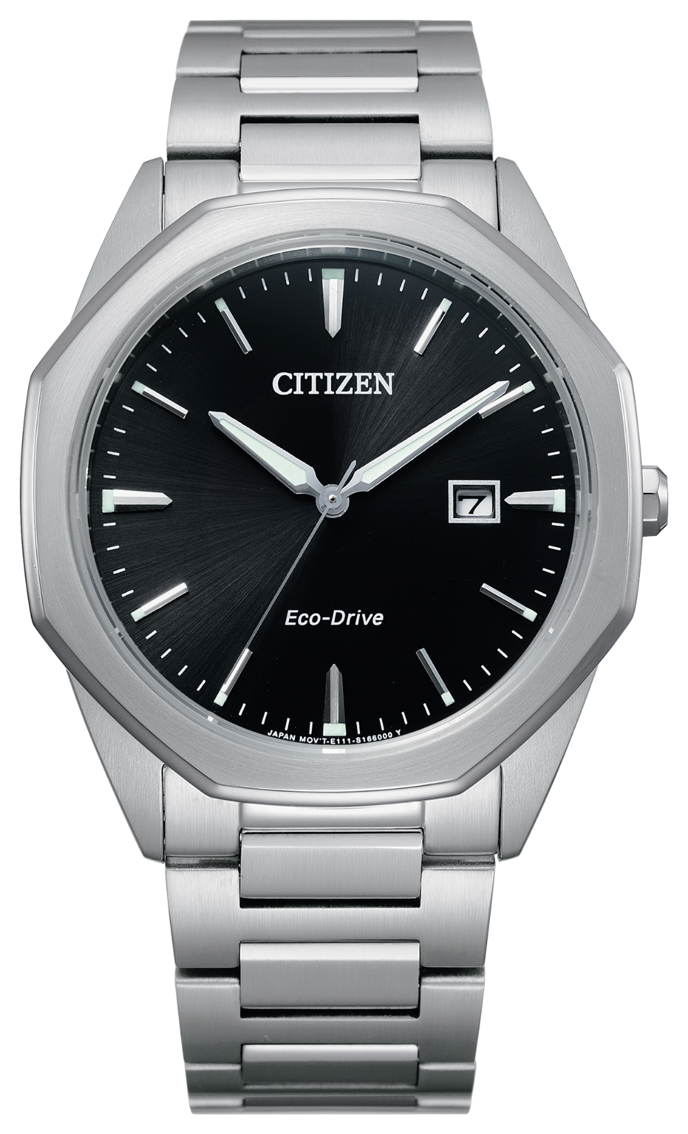 CITIZEN - CORSO - Men's Stainless Steel Eco-Drive Watch with Black Dial, Octagonal Bezel, Date...