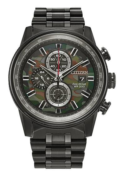 CITIZEN - NIGHTHAWK - Men's Black Ion-Plated Stainless Steel Eco-Drive Watch with Bold Camo Print...