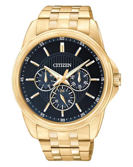 CITIZEN - QUARTZ - Men's Gold-Tone Stainless Steel Quartz Watch with Black Dial, Window Day-Date...