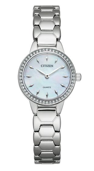 CITIZEN - LADIES QUARTZ - Ladies Stainless Steel Quartz Watch with Mother-of-Pearl Dial, Crystal Bezel...