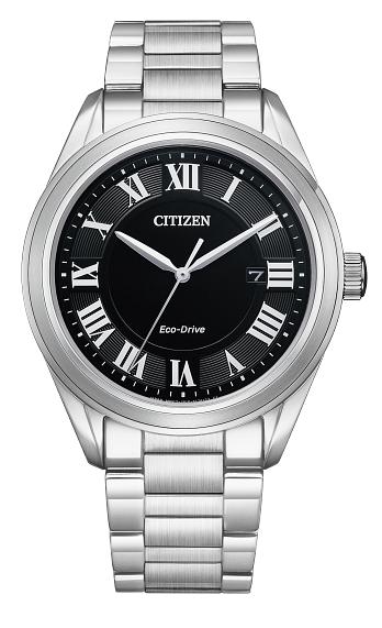 CITIZEN - AREZZO - Men's Stainless Steel Eco-Drive Watch with Black Dial, Roman Numerals, Date...