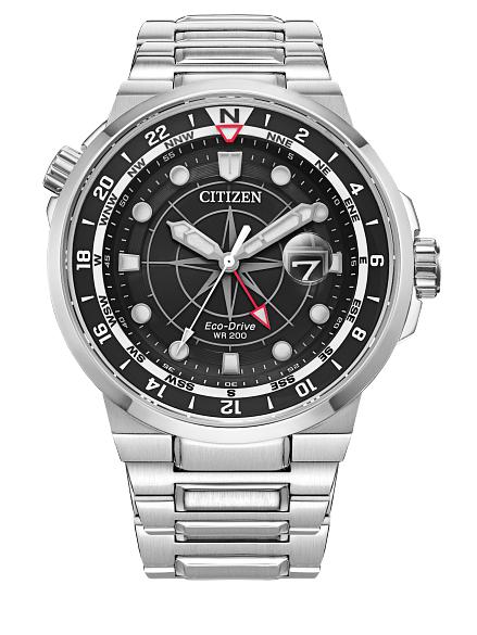 CITIZEN - ENDEAVOR - Men's Stainless Steel Eco-Drive Watch with Black Dial, Dual Time Zone,...