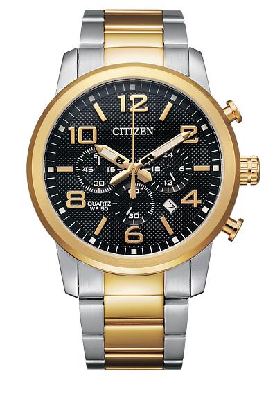 CITIZEN - QUARTZ - Men's Two-Tone Stainless Steel Quartz Watch with Black Dial, 12/24 Hour...
