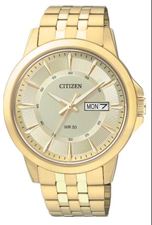 CITIZEN - Men's Gold-Tone Stainless Steel Quartz Watch with Champagne Dial, Window Day/Date Display &...