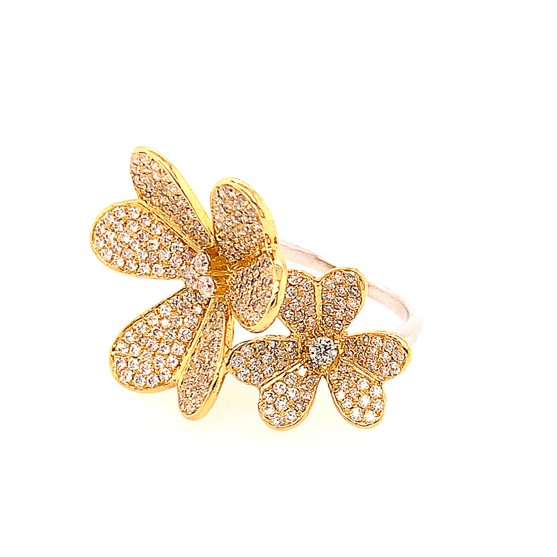 18K Two-tone 2.18ct. Flower Shaped Diamond Fashion Ring