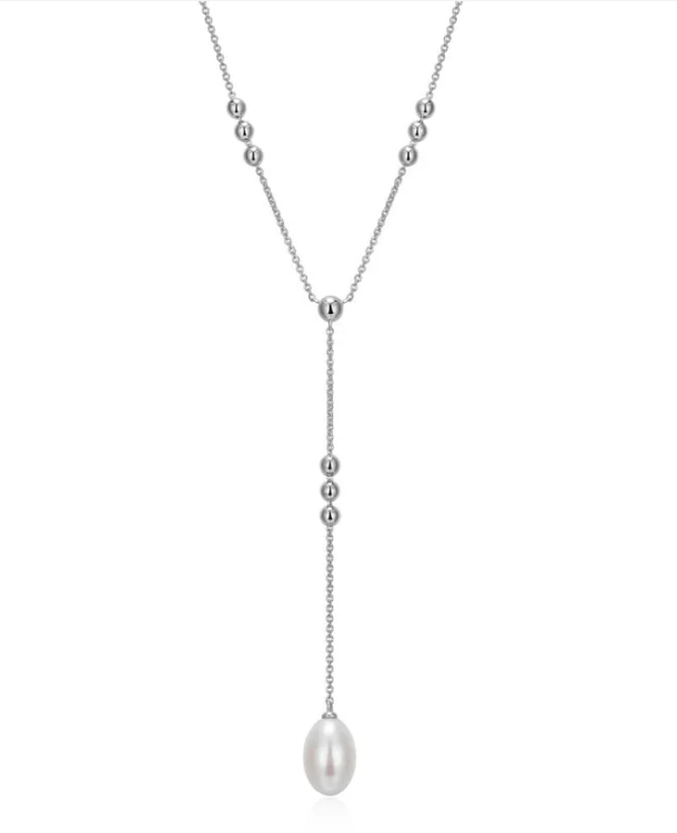ELLE - Genesis Collection - Sterling Silver Rhodium Plated 17"+3" Genuine Pearl Necklace