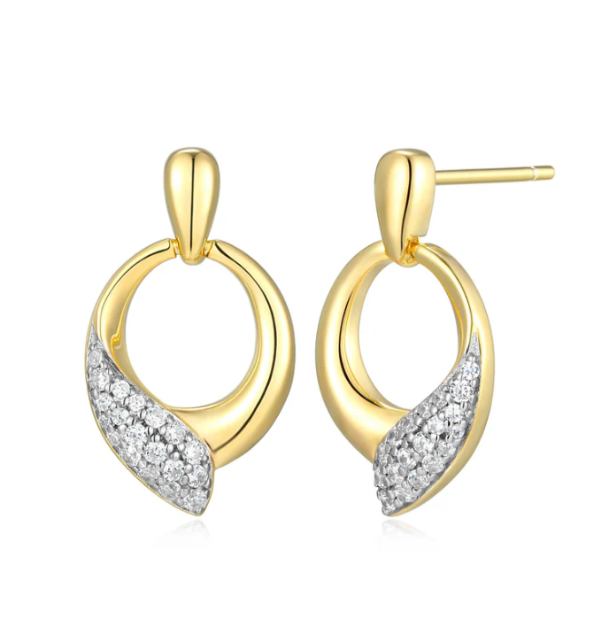 ELLE - Amour Collection - Sterling Silver & Yellow Gold Rhodium Plated CZ Post Earrings