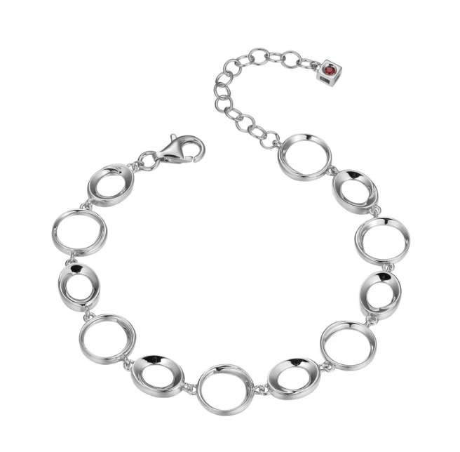 ELLE - Swirl Collection - Sterling Silver Rhodium Plated 6.75"+1.5" Interlocking Circles Bracelet