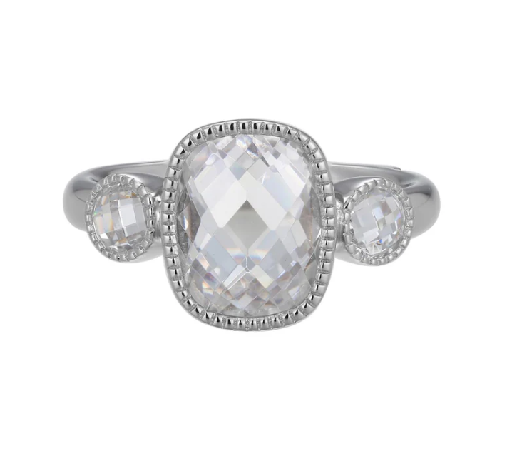 ELLE - Essence Collection - Sterling Silver Rhodium Plated Three Stone CZ Ring, Size 7