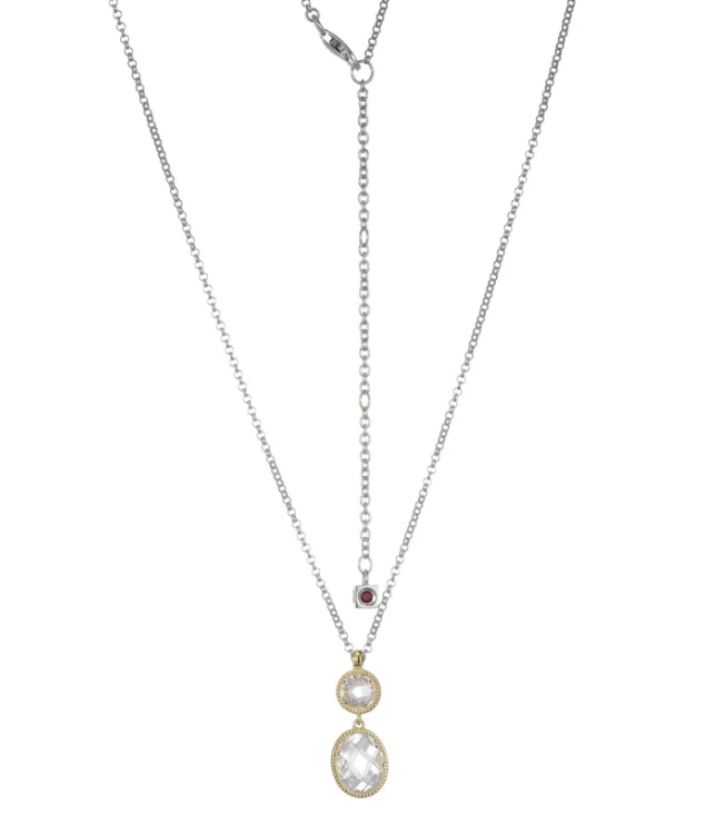 ELLE - Essence Collection - Sterling Silver & Yellow Gold Rhodium Plated 17"+3" Faceted CZ...