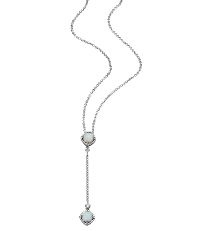 ELLE - Sway Collection - Sterling Silver Rhodium Plated 17"+3" Created Opal & White Topaz...
