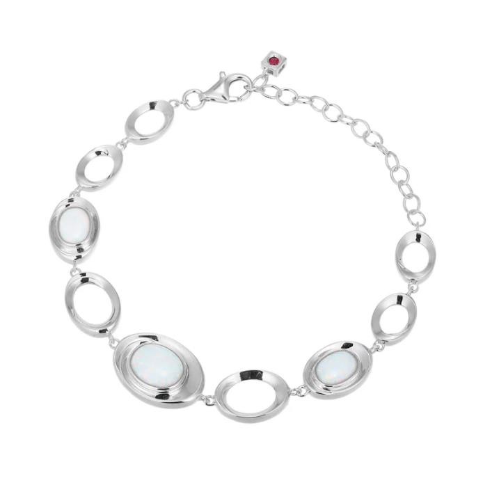 ELLE - Swirl Collection - Sterling Silver Rhodium Plated 6.25"+2" Lab-Created Opal Bracelet