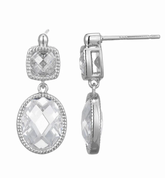 ELLE - Essence Collection - Sterling Silver Rhodium Plated CZ Post Earrings